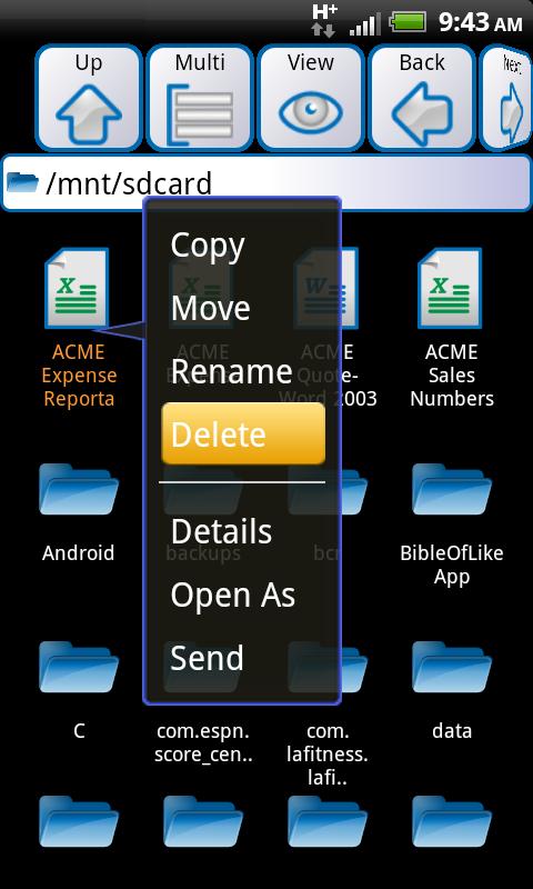 Next is one more file manager for devices running on Android. Along the usual options offered by the other file administrators, eFile permits you to send certain files over its Wi-Fi connection and facilitates drag and drop (just by pushing and holding the mouse buttons). The upper and bottom pop-up board menu saves the restricted space available on mobile devices.